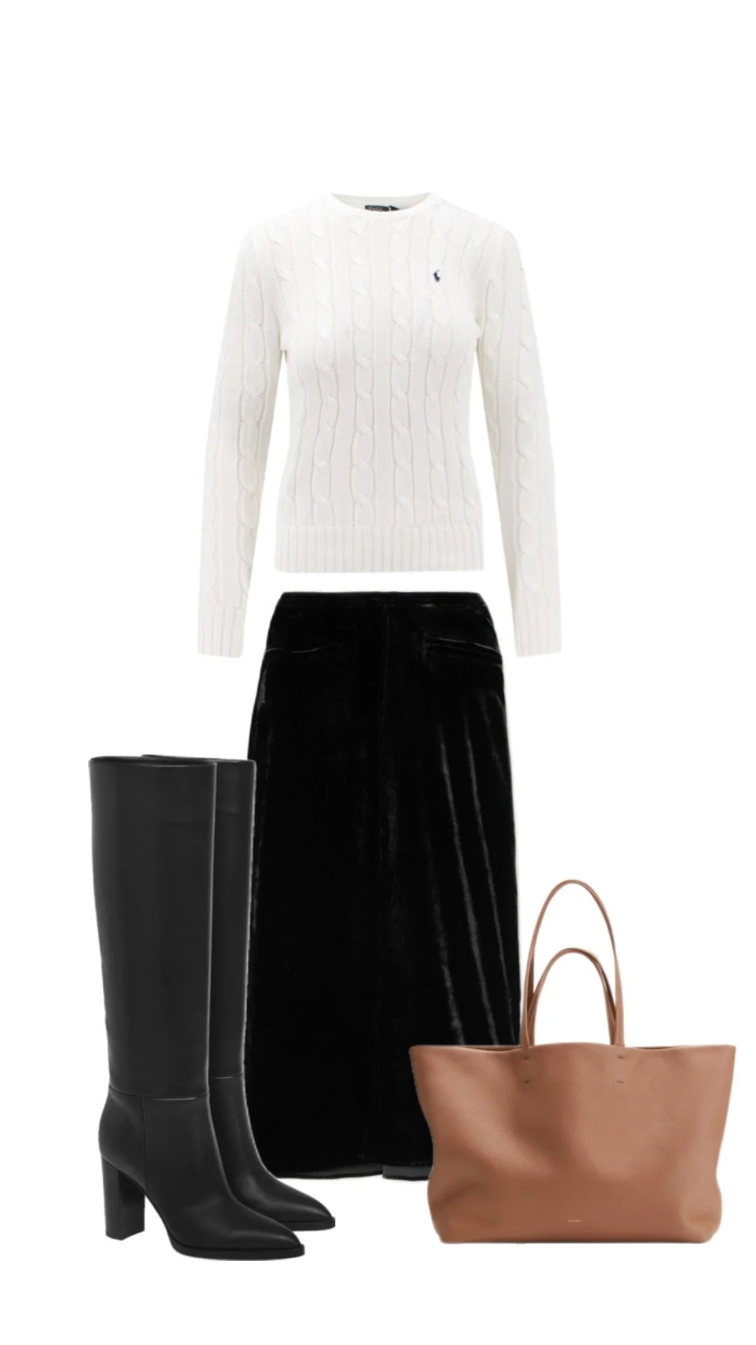 My favorite velvet skirt was given to me by my mother, and I got it tailored to fit perfectly. It’s black, and I style it with so many different long-sleeve tops and turtlenecks. This is the perfect way to add more texture to your outfit while maintaining the versatility of your wardrobe.