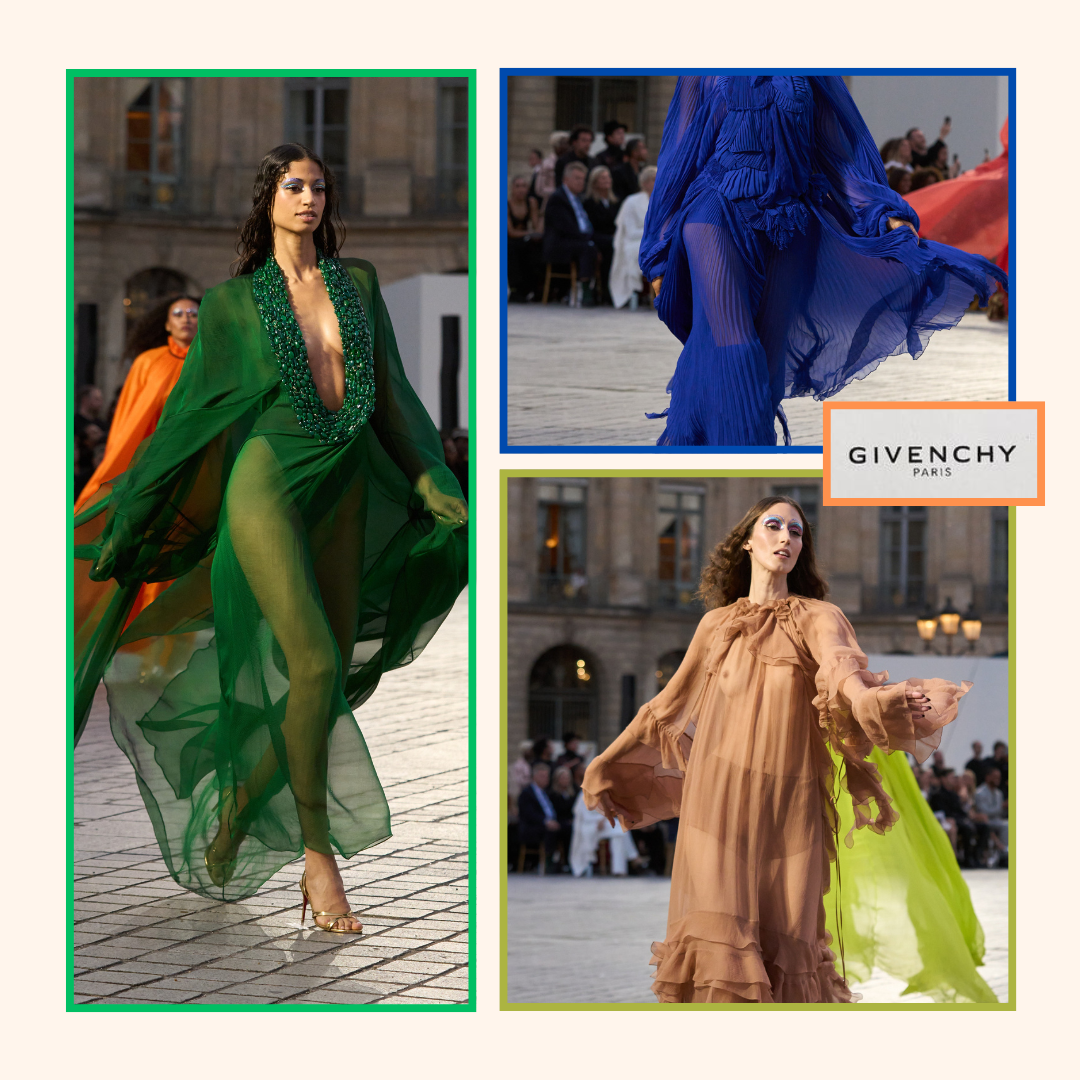 The other era I favor is the 1970s with the call to gymnastics. The above dresses by Givenchy are essentially extensions of gymnastics leotards in a more elevated way, and I love the feminine silhouettes of these dresses. The bold colors, sequins, and ruching are akin to the aesthetic chaos of a gymnastics leotard, and I love the bright and fun colors of these pieces.